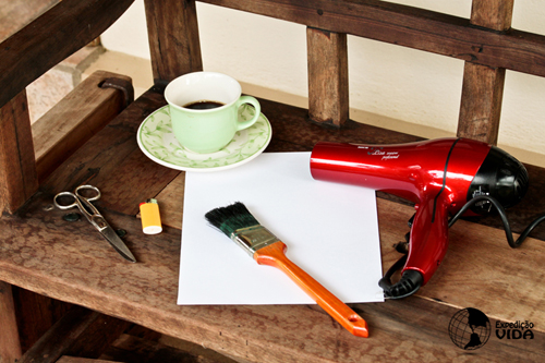 Sem mover a cartolina de lugar, ligue o secador e agite sobre a cartolina até o papel ficar completamente seco.