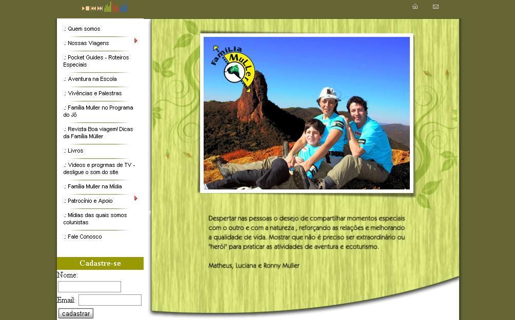 A Família Muller ficou conhecida por suas viagens ecológicas e os esportes radicais que praticam em lugares deslumbrantes. O objetivo da família com a divulgação de suas viagens é dividir com as pessoas o sentimento mágico de estar em meio à natureza praticando atividades que estimulam o trabalho em equipe, a preservação do meio ambiente e o espírito de liberdade!