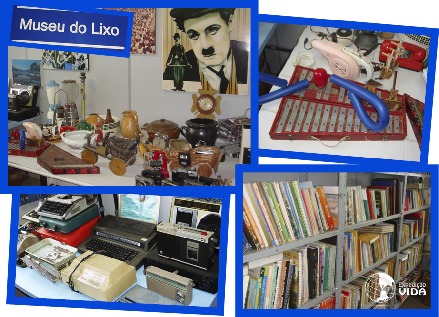 Para terminar o post, preciso mostrar umas fotos do “Museu do Lixo” que o pessoal da Reciblu montou! Gente, aquilo tudo ali eles encontraram no lixo. Máquinas fotográficas antigas, secadores, máquinas de escrever… verdadeiras relíquias! Mas o mais impressionante é a quantidade de livros! Livros bons, inteiros, que poderiam ser aproveitados nas escolas e em diversas organizações educacionais! Loucura tudo o que as pessoas colocam fora, não é?